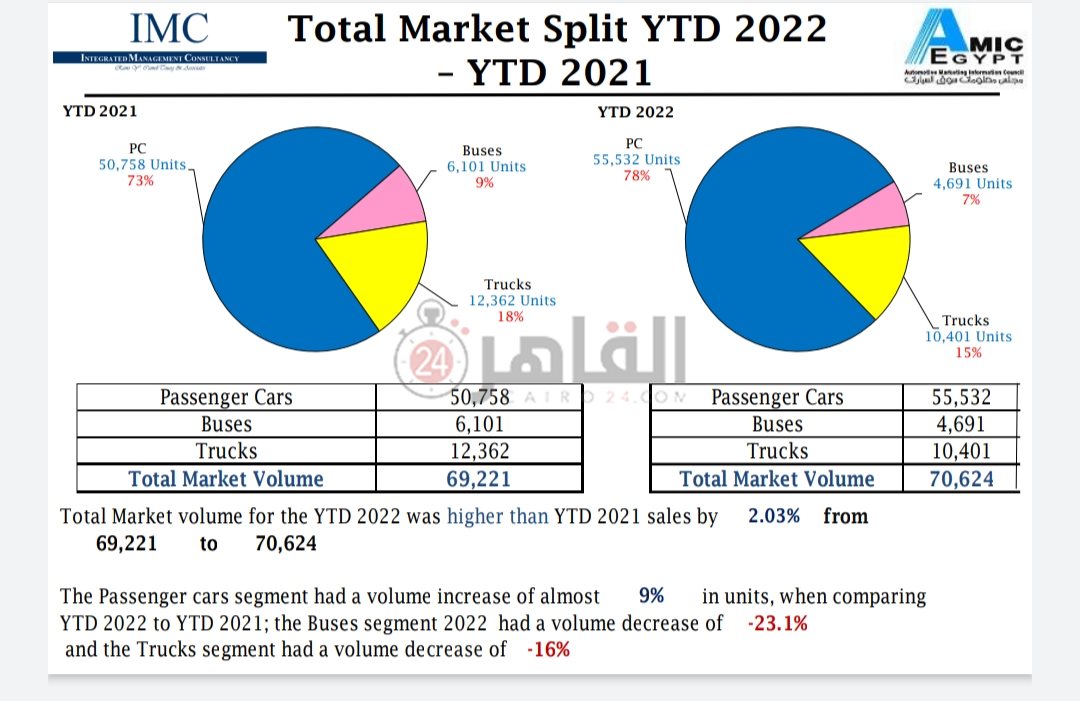 وحسب ما أوضحه تقرير أميك الصادر عن شهر مارس الماضي، ارتفعت مبيعات السيارات في السوق المصري بنسبة 2،3%، حيث سجلت 70،624 وحدة، بدلًا من 69،221 وحدة.