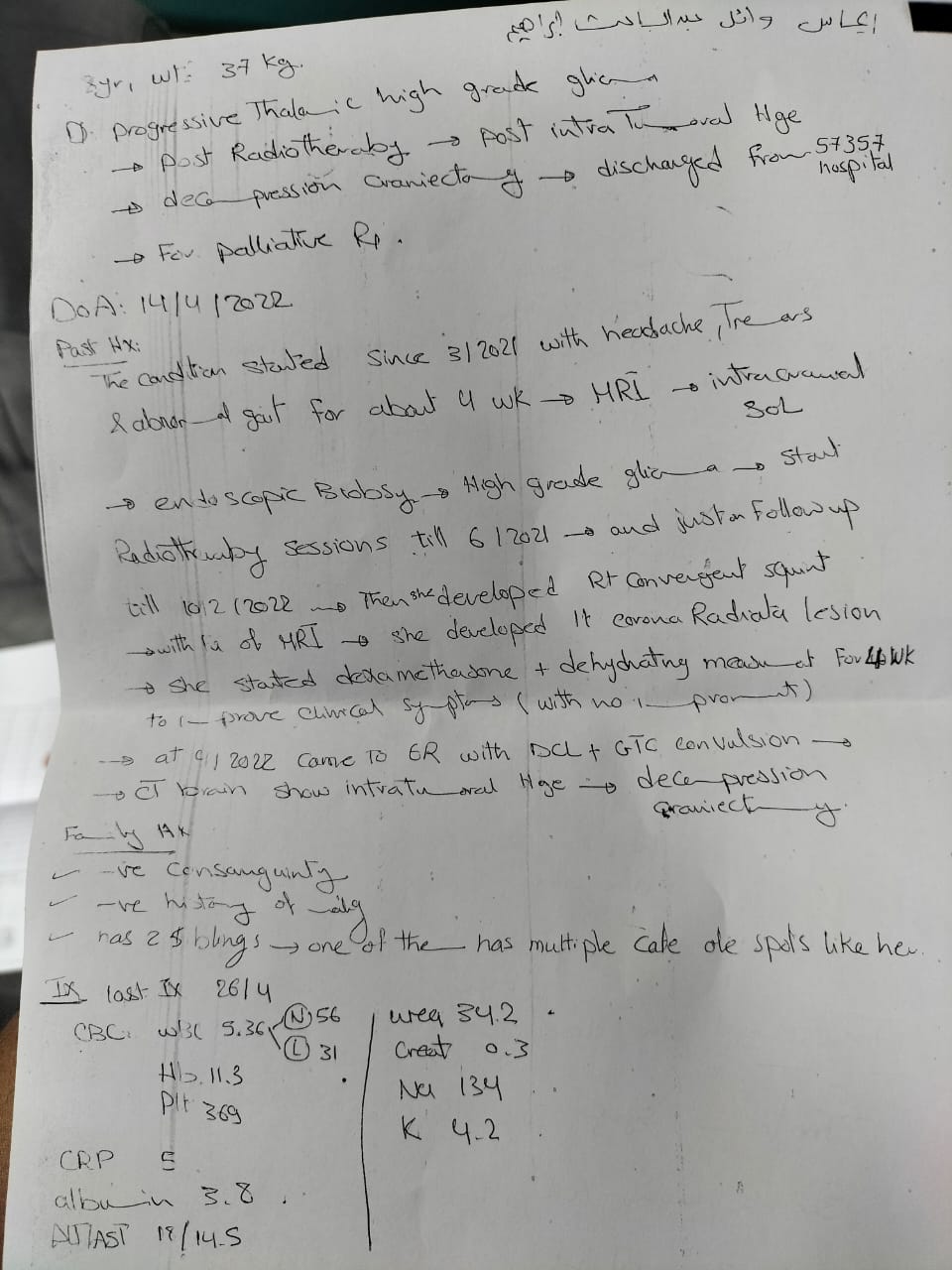 وتابعت: بعد 3 أشهر خضعت للعلاج الكيميائي والإشعاع، وأجرينا أشعة رنين، واكتشفنا حينها زيادة حجمه، مشيرة إلى أن الأشعة؛ بينت أن الورم خبيثا وأصبح يكبر بشكل سريع.