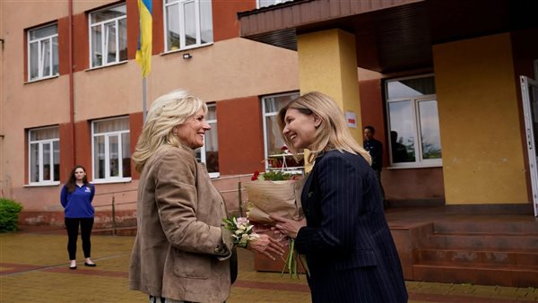 والتقت جيل بايدن، في أوكرانيا بزوجة الرئيس الأوكراني أولينا زيلينسكا، في مدرسة ببلدة زهورود الواقعة على الحدود الأوكرانية السلوفاكية، وهي بلدة يسكنها 100 ألف شخص وتقع على خط الحدود مع سلوفاكيا.