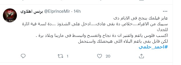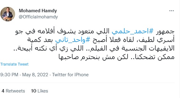 وجاءت بعض التعليقات من الجمهور كالتالي: جمهور أحمد حلمي اللي متعود يشوف أفلامه في جو أسري لطيف، لقاه فعلا أصبح واحد تاني بعد كمية الأيفيهات الجنسية في الفيلم.. اللي زي أي نكته أبيحة.. ممكن تضحكنا.. لكن مش بنحترم صاحبها.