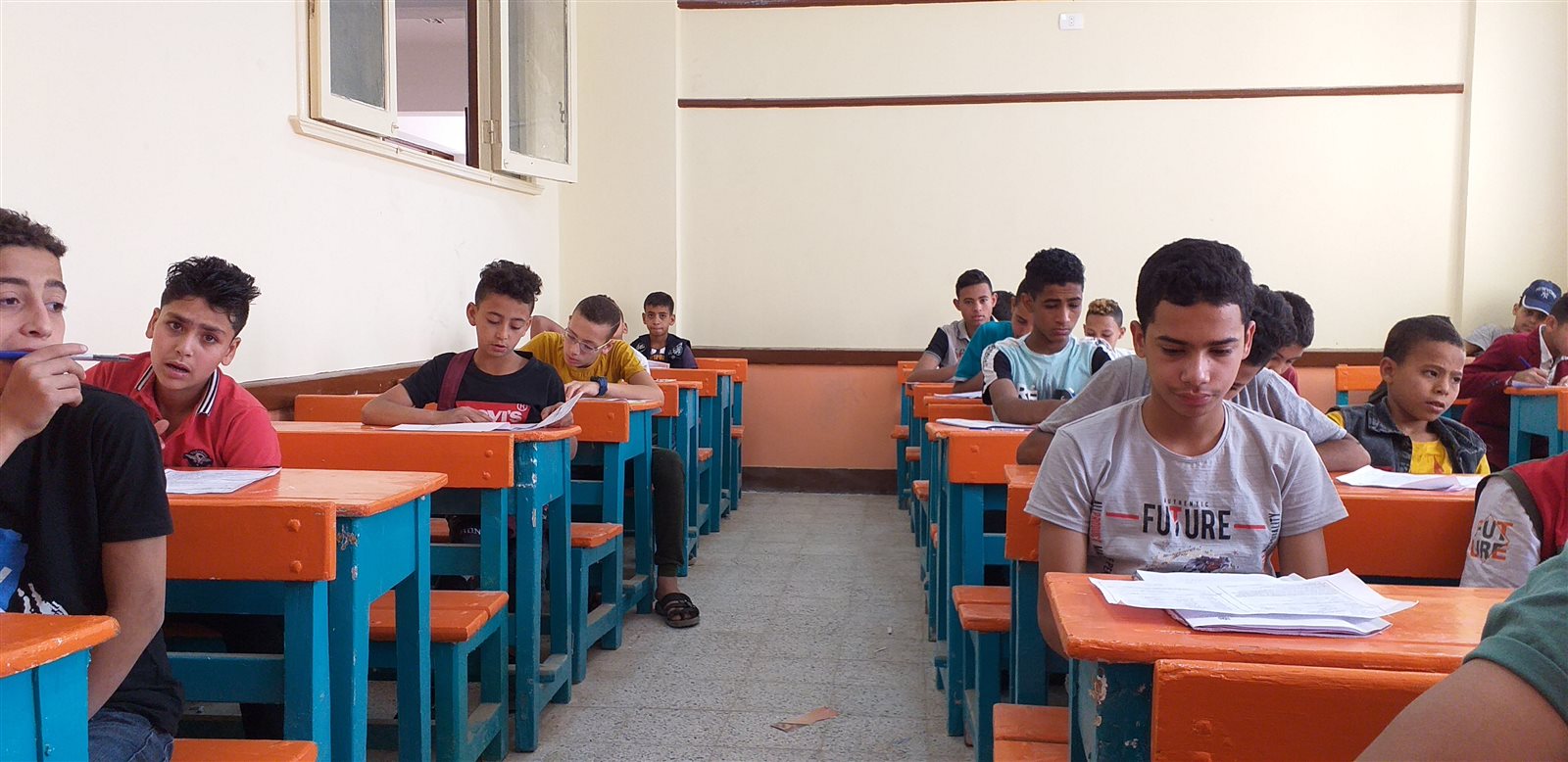 طلاب الصف الأول والثاني الإعدادي يؤدون امتحان مادتي اللغة الإنجليزية والدراسات