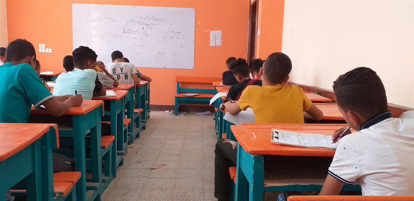 تلاميذ الصف الرابع الابتدائي يؤدون امتحان مادة العلوم بنسبة حضور 98%