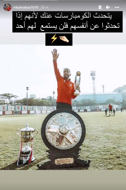 وكتب محمود كهربا عبر صفحته الشخصية بموقع التواصل الاجتماعي إنستجرام: يتحدث الكومبارسات عنك لأنهم إذا تحدثوا عن أنفسهم فلن يستمع لهم أحد.