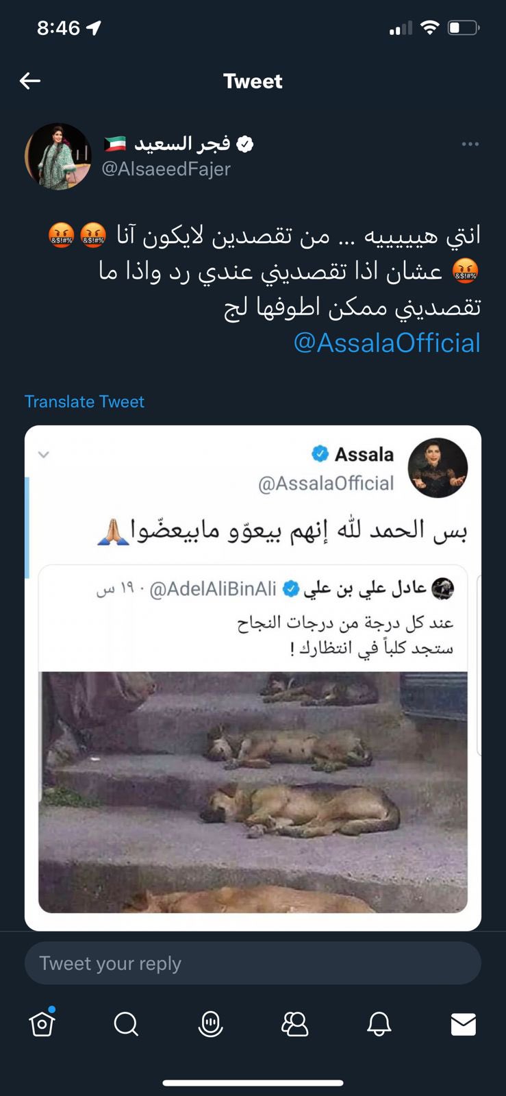 فجر السعيد لم تدع التغريدة تمر مرور الكرام، فكتبت: أنتِ هيييه مَن تقصدين؟، لا يكون أنا، عشان إذا تقصديني عندي رد، وإذا ما تقصديني ممكن أطوفها لج.