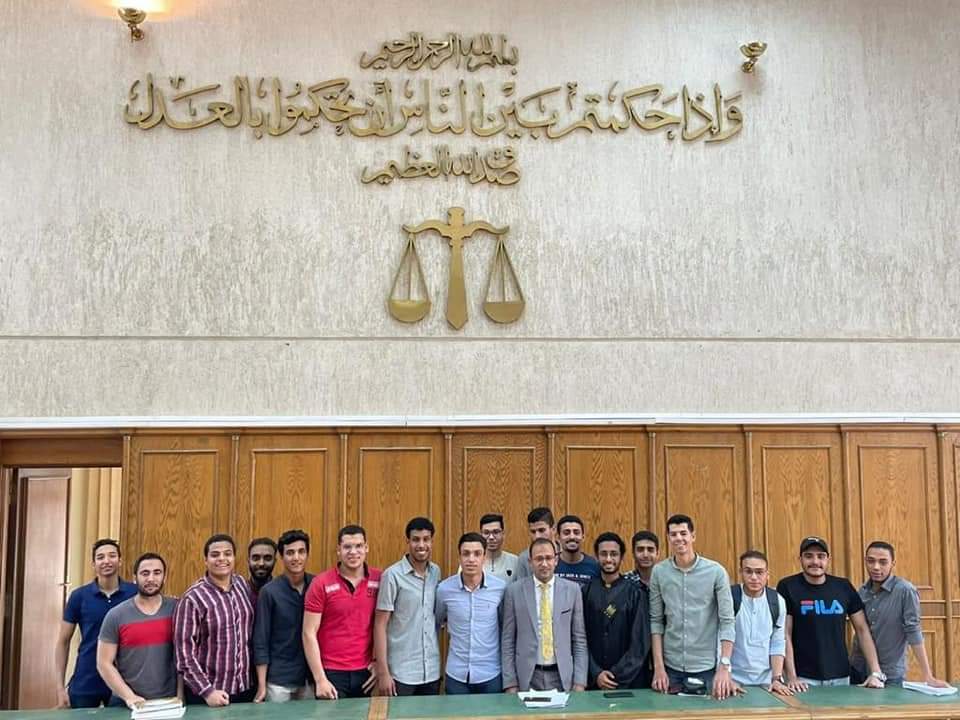 ويأتي ذلك تحت رعاية الدكتور ممدوح مهدي القائم بعمل رئيس الجامعة، وأمل لطفي جاب الله عميد كلية الحقوق، وأحمد عبد اللاه القائم بعمل وكيل الكلية لشئون التعليم والطلاب، وتحت إشراف الدكتور هيثم محمد صابر المشرف على تدريب الطلاب بقسم الدراسة باللغة الإنجليزية، حيث يتم اختيار فريق المحكمة الصورية من خلال تقييم أولي للطلبة المتقدمين بناءً علي المهارات الشخصية المتعلقة بالإلقاء والتحليل، ويلتحق فريق المحكمة الصورية ببرنامج تدريبي متكامل، يشتمل علي نوعين من التدريب: التدريب القانوني المعرفي المرتبط بالقضايا المطروحة للمنافسة الاتجار بالبشر، تغير المناخ، مسئولية شركات التواصل الاجتماعي عن المحتوى غير القانوني المنشور على منصاتها؛ والتدريب على المهارات اللازمة للمنافسة، من تحليل وصياغة ومرافعة، ونظرًا للمسابقات الدولية التي يشارك فيها فريق المحكمة الصورية يشترط أن يكون الطلبة المتقدمين على مستوى جيد جدًا في اللغة الإنجليزية أو الفرنسية.