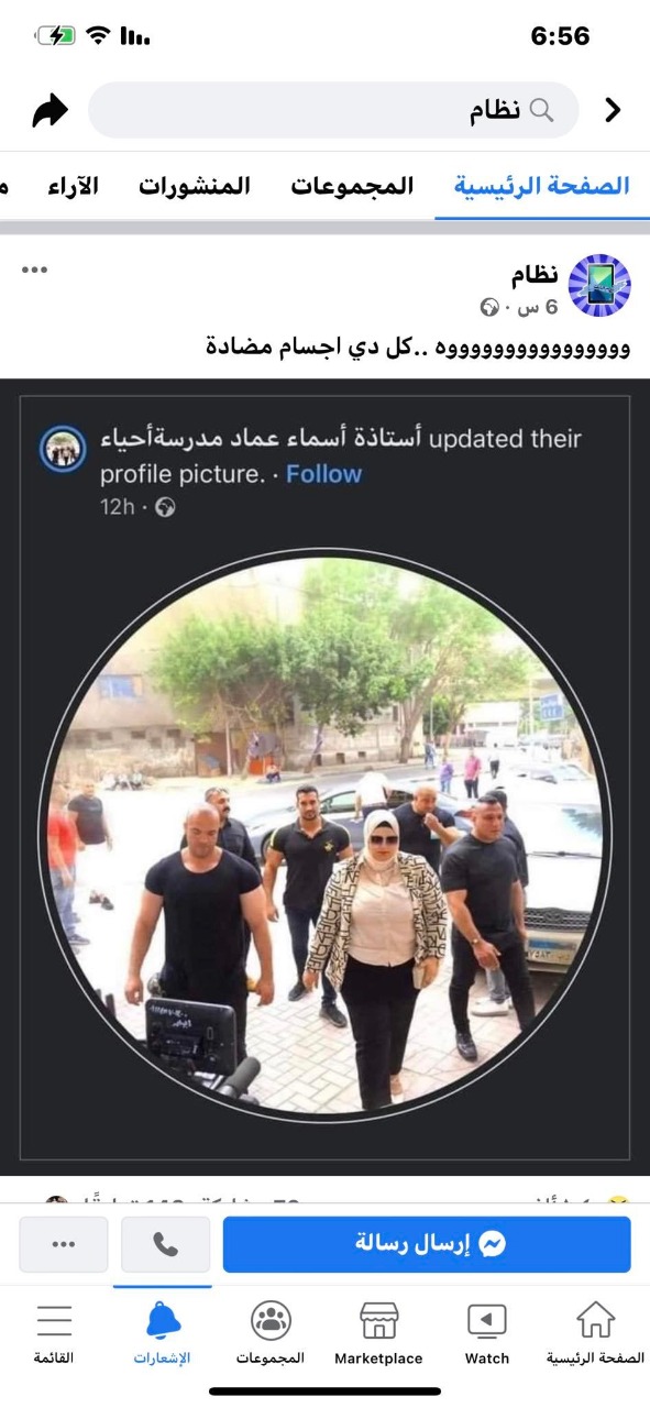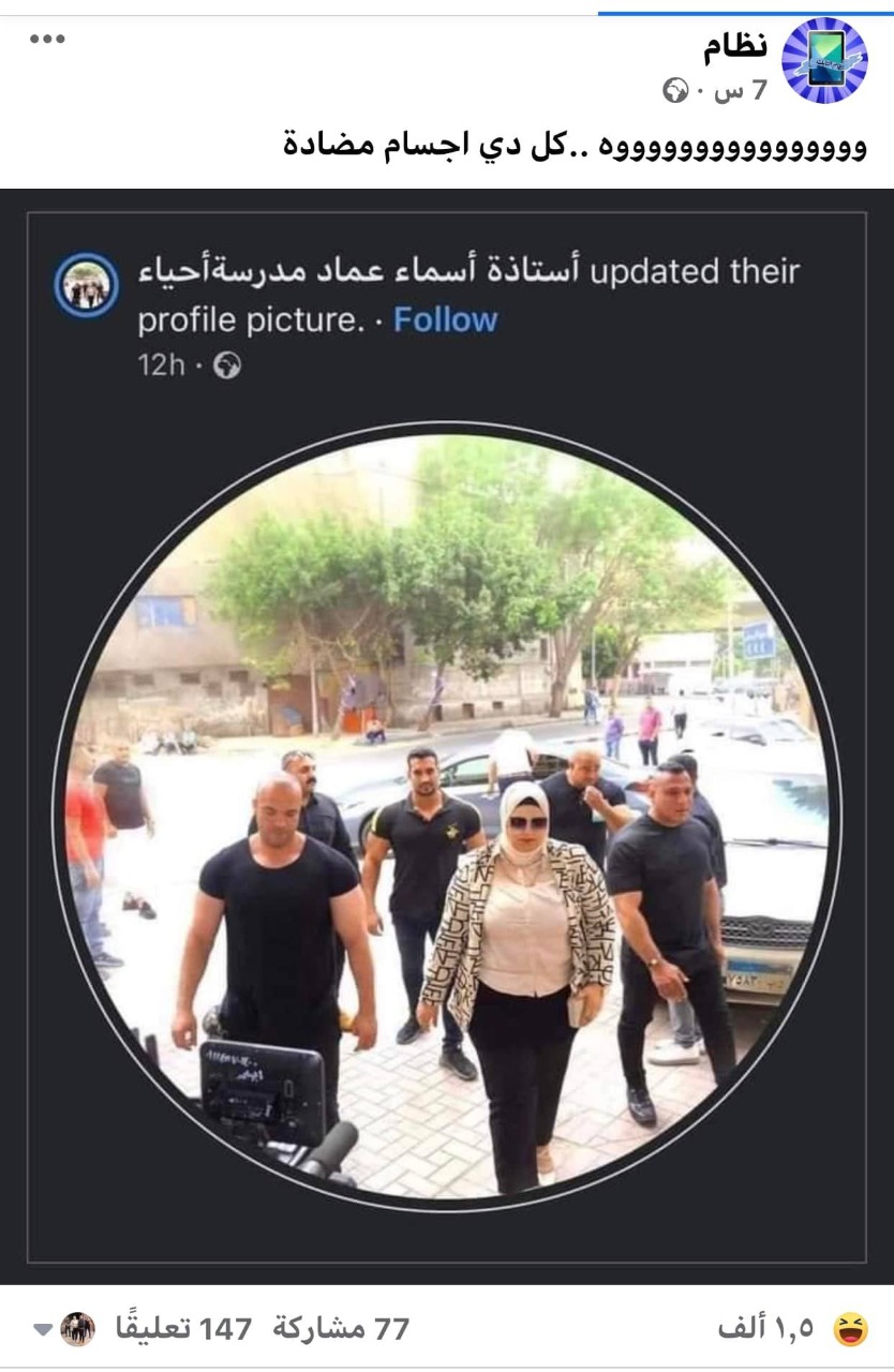 أثارت صورة لمُدرسة أحياء، عبر مواقع التواصل الاجتماعي، يظهر فيها البودي جار الخاص بالمعلمة، وعدد من الحرس الخاصين بالمُعلمة.