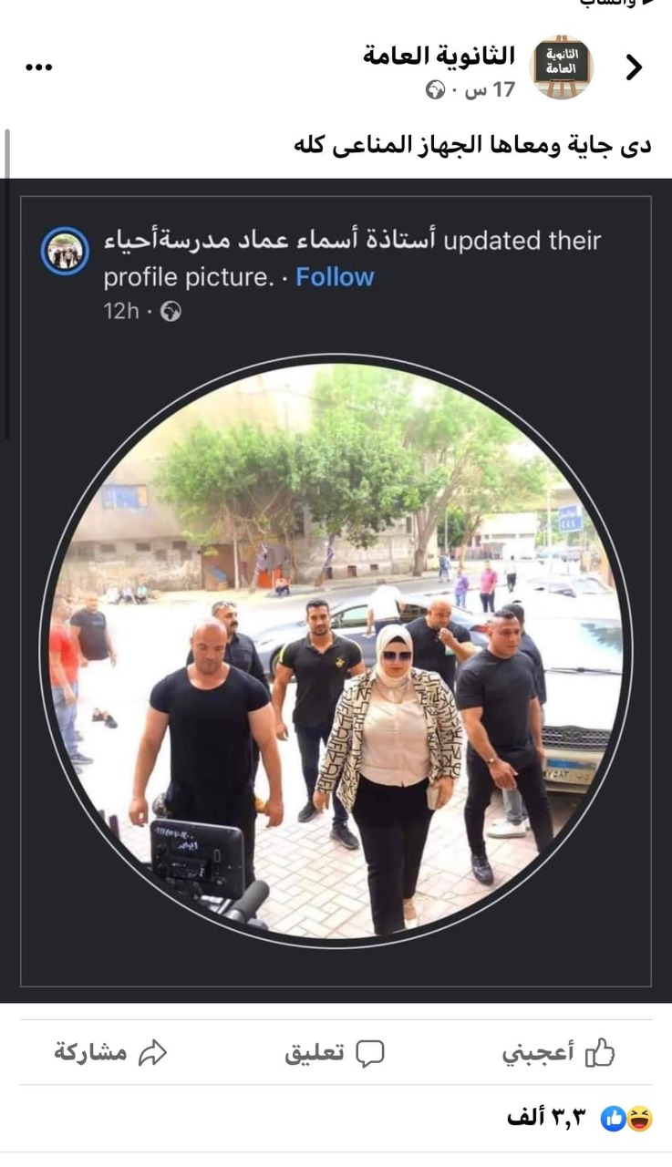 وكتب أحد الطلاب معلقا على صورة المعلمة: لما تبقي مدرس أحياء ورايح تتفرج على فيلم الخلية.