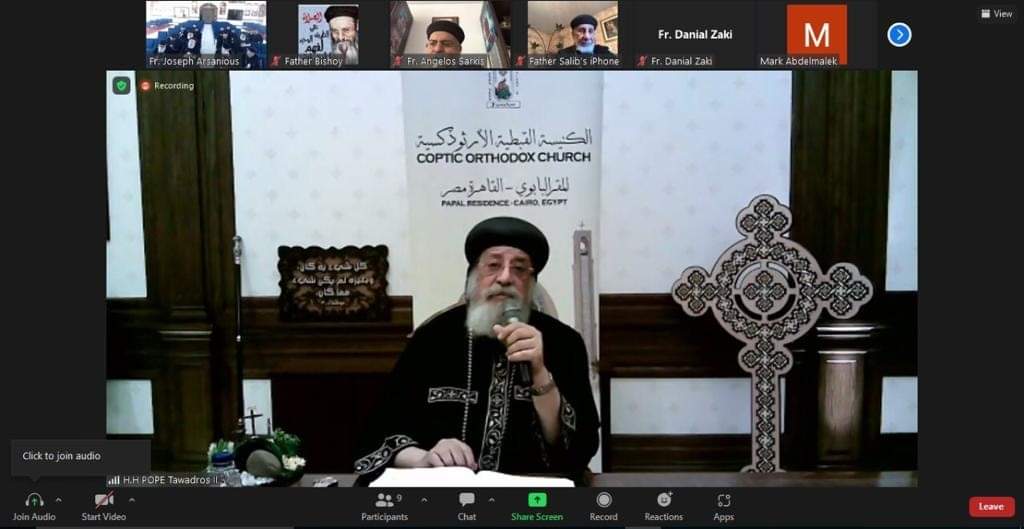 البابا تواضروس يلتقي كهنة منطقة الأرشيديوسس بأمريكا عبر Zoom