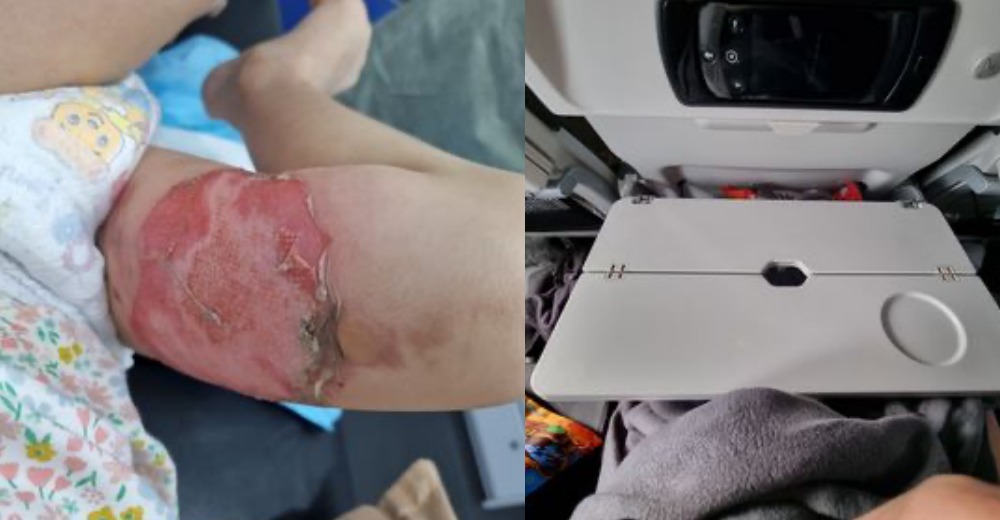 تعرض طفلة للحرق بسبب تصميم طاولة على الطائرة