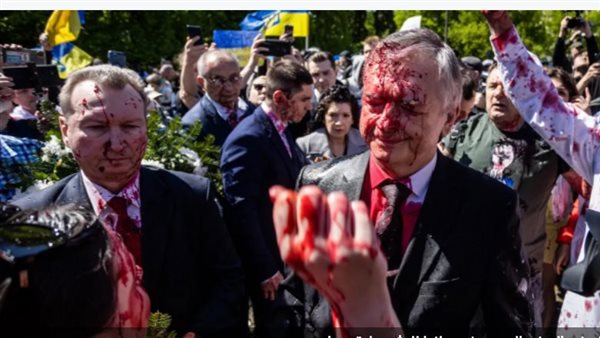 وتعرض السفير الروسي في بولندا للرش بمادة حمراء، الاثنين الماضي، من قبل أشخاص يحتجون على الحرب في أوكرانيا أثناء توجهه لوضع الزهور على المقبرة العسكرية السوفيتية في وارسو احتفالا بالذكرى السابعة والسبعين للانتصار على ألمانيا النازية، مما أثار رد فعل غاضبا من موسكو.