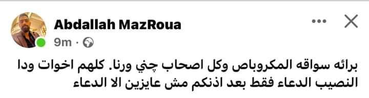 بينما نشر عبد الله مزروع، شقيق الفتاة، منشورا على صفحته الشخصية بفيسبوك، قائلًا: براءة سائق الميكروباص وكل أصحاب جنى ورنا كلهم أخوات، وده النصيب الدعاء فقط بعد إذنكم مش عاوزين إلا الدعاء.