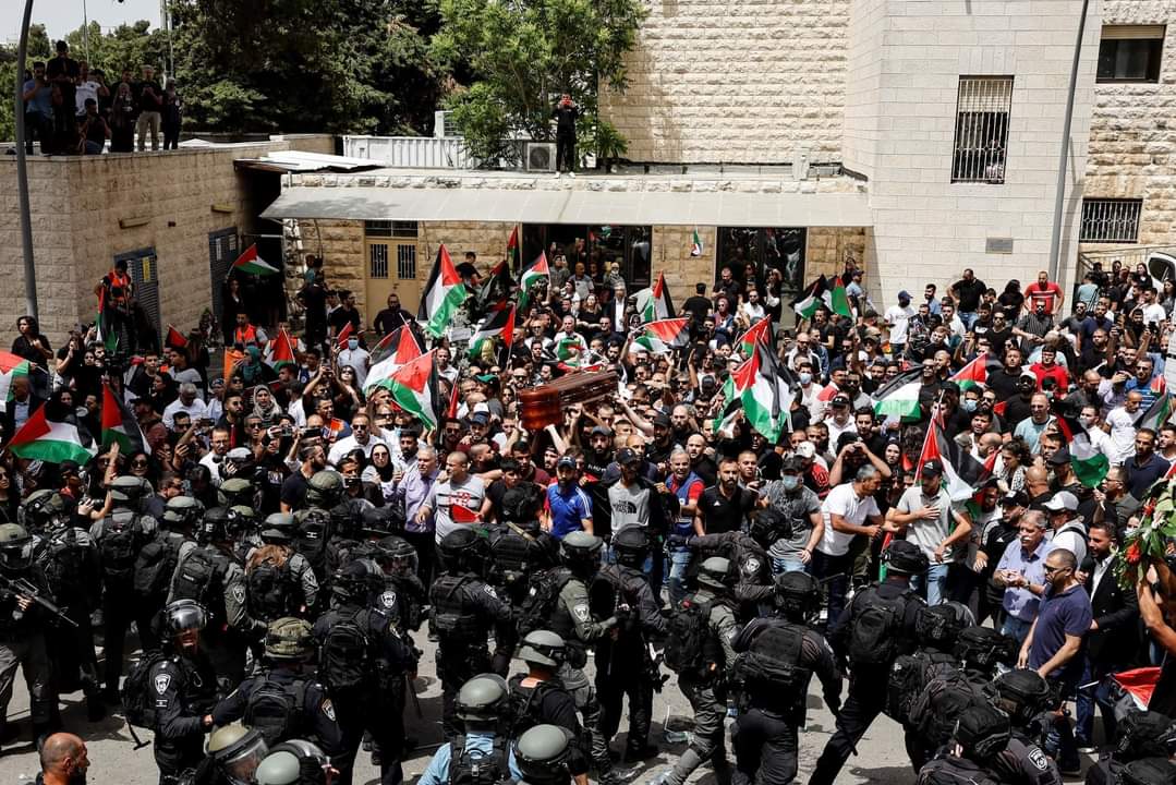اعتدت قوات الاحتلال الإسرائيلي، على مشيعي جثمان الصحفية الفلسطينية الراحلة شيرين أبو عاقلة، اليوم الجمعة، وهاجمت قوات الاحتلال المشيعين وحملة التابوت؛ الذي يحمل جثمانها أثناء خروجه من المستشفى الفرنسي في طريقه إلى الكنيسة بالقدس الشرقية بعد ظهر اليوم.