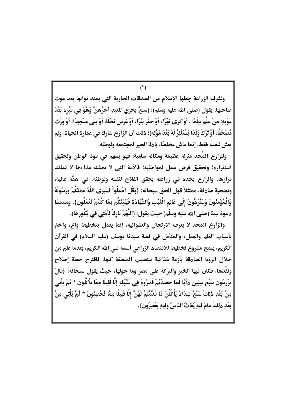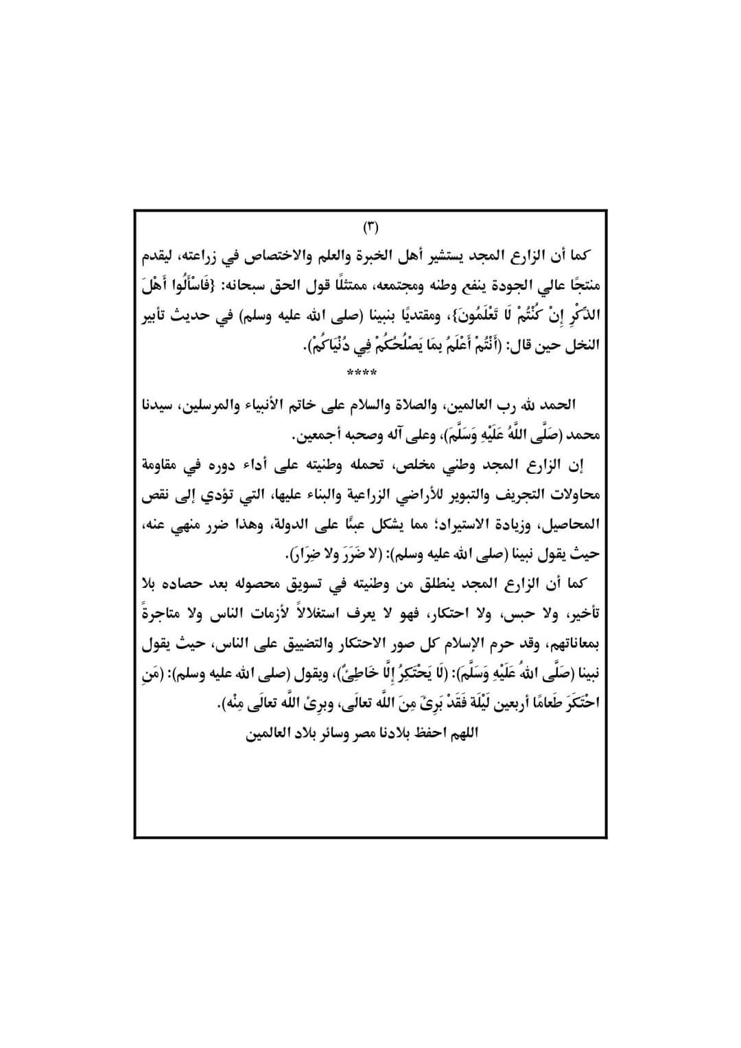 الزارع المجد.. الأوقاف تنشر نص خطبة الجمعة المقبلة