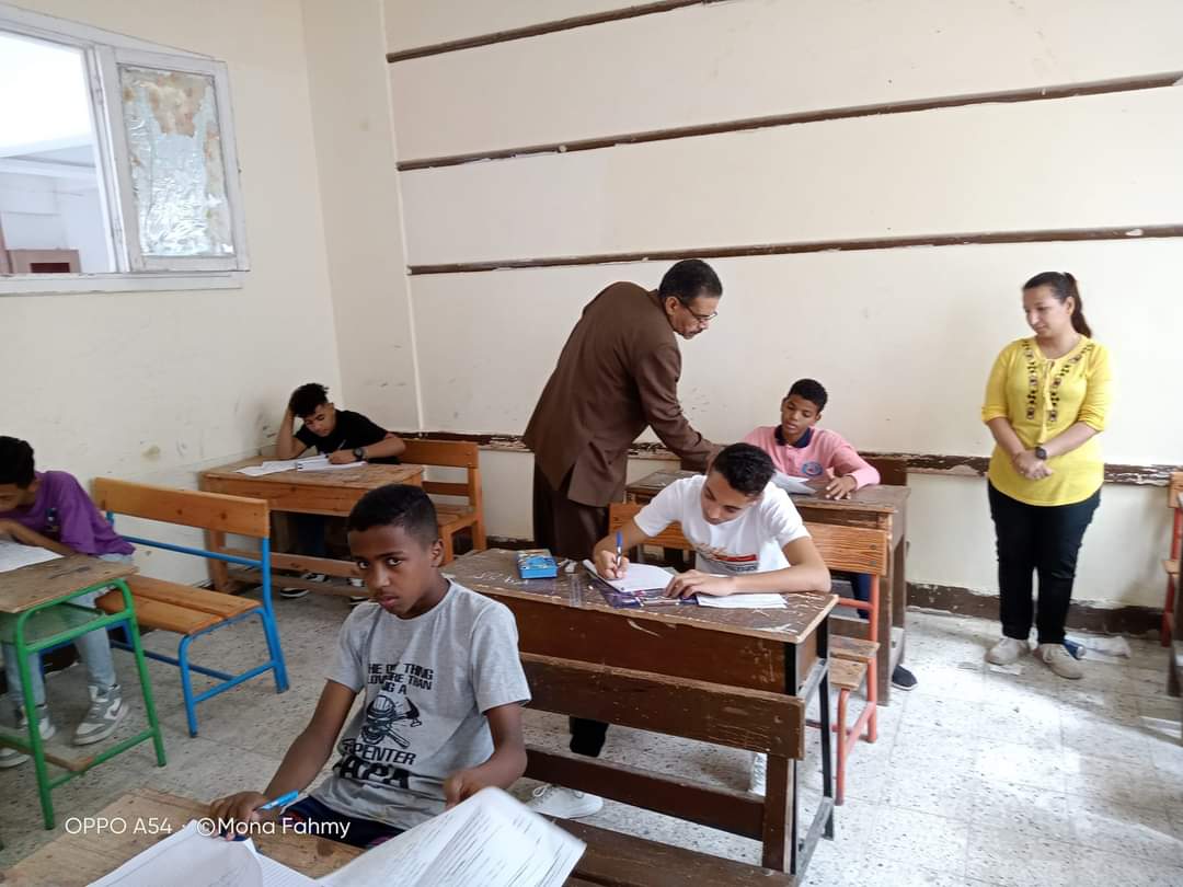وخلال جولته اطمأن منير، على سير العمل بالامتحانات حيث يؤدي الطلاب اليوم، امتحانات مادتي اللغة العربية والتربية الدينية، كما تابع الوضع العام للجان الامتحانية، وخلو ورقة الأسئلة من أي مشاكل فنية، أمام الطلاب الممتحنين من خلال مناقشة مع الطلاب.