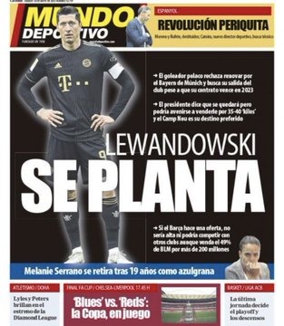 عنونت موندو ديبورتيفو بـ ليفاندوفسكي يعترض، وقالت في غلافها أن المهاجم البولندي يرفض التجديد مع بايرن ميونخ ويسعى لخروجه رغم انتهاء عقده في 2023.