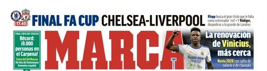 عنونت ماركا في غلافها اليوم بـ تجديد فينيسيوس يقترب حتى عام 2028 بقفزة في الراتب والشرط الجزائي.