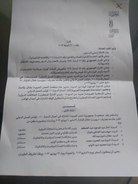 تقدم النائب عباس السادات، عضو مجلس النواب، عن حزب الإصلاح والتنمية، بطلب إحاطة موجهة إلى رئيس مجلس الوزراء، الدكتور مصطفى مدبولي، ووزير القوى العاملة، محمد سعفان، وذلك بشأن سفر وفد حكومي خلال الفترة من 27 مايو إلى 11 يونيو 2022؛ للمشاركة في أعمال الدورة 110 لـمؤتمرالعمل الدولي المنعقد في جنيف.