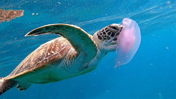 غواصون يوثقون لحظة تناول السلاحف بعض القناديل البحرية| صور وفيديو