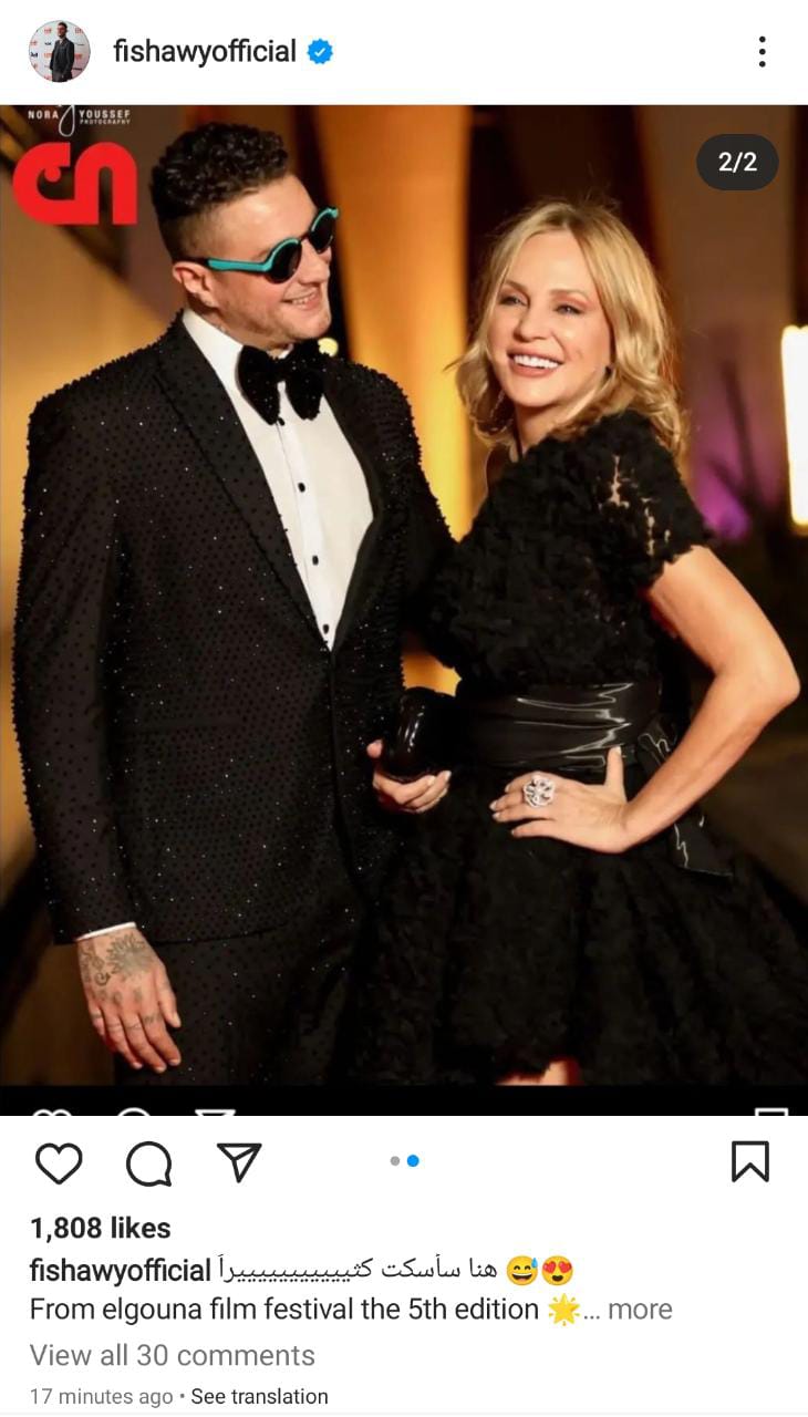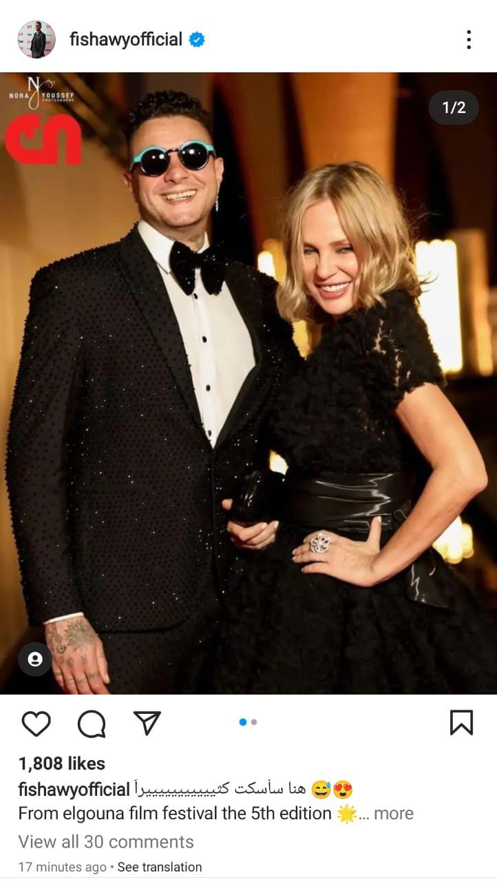 ونشر أحمد الفيشاوي صورة له مع شيرين رضا في مهرجان الجونة السينمائي بدورته الخامسة وعلق عليها: هنا سأسكت كثيرًا.