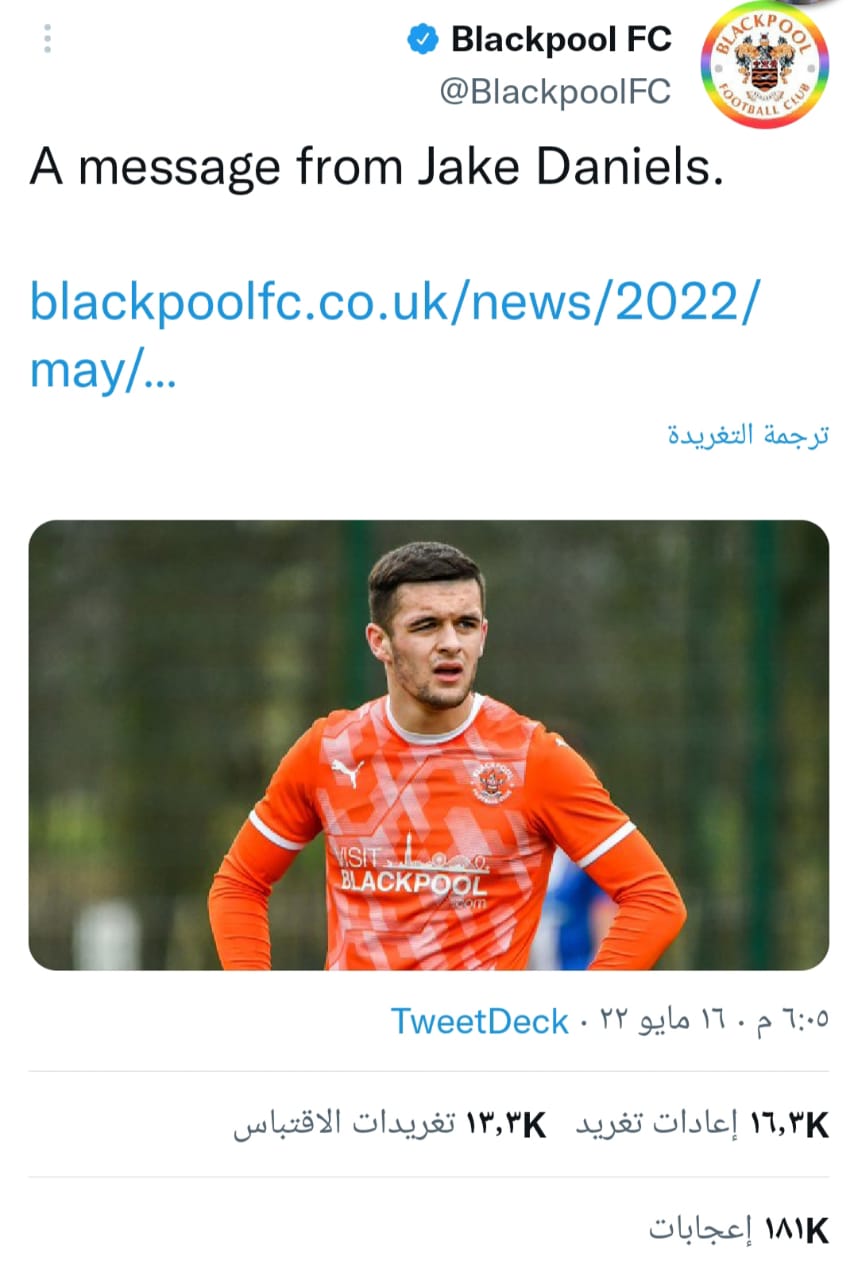 شهدت الساعات الأخيرة حالة من الجدل، بعدما أعلن جاك دانيلز لاعب نادي بلاكبول، والذي ينشط في دوري الدرجة الثانية الإنجليزية، اعترافه بمثليته الجنسية، ليصبح أول لاعب كرة قدم محترف في المملكة المتحدة وأوروبا يعترف بمثليته.