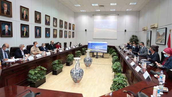 وخلال الاجتماع قدم اللواء عاطف مفتاح المشرف العام على مشروع المتحف المصري الكبير والمنطقة المحيطة، عرضا تقديميا استعرض خلاله الموقف التنفيذي لإنجاز الأعمال بموقع المشروع والعرض المتحفي وأنظمة التأمين والاتصالات ومتحف مراكب خوفو ومركز الترميم ومحطات الطاقة والمنطقة المحيطة بمشروع المتحف من حيث الطرق المحيطة والأسوار ورفع كفاءة المباني حول موقع المتحف.
