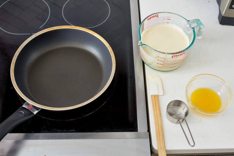 - بعد الحصول على عجينة الكريب السائلة سيتم تسويتها بالطريقة المذكورة في الأعلى.