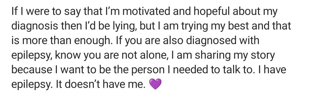واختتمت نور حديثها: سأكون كاذبة إذا قلت إنني متحمسة ومتفائلة بشأن تشخيصي، لكنني أبذل قصارى جهدي وهذا أكثر من كافٍ.. إذا تم تشخيصك أيضًا بالصرع، فأعلم أنك لست وحدك، فأنا أشارك قصتي لأنني أريد أن أكون الشخص الذي يجب أن تتحدث معه.