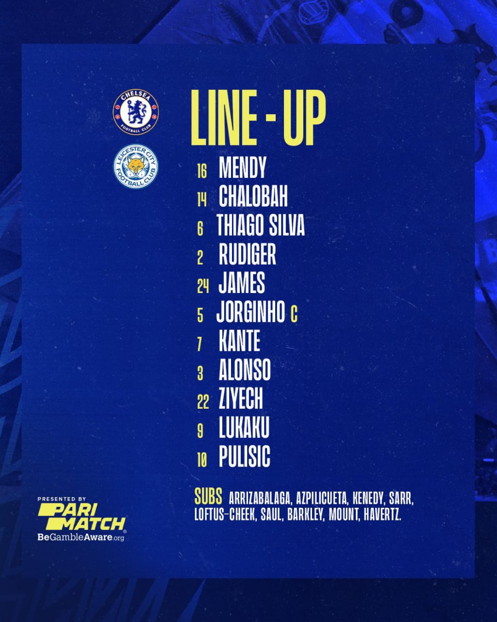 وشهد تشكيل تشيلسي أمام ليستر سيتي وجود الدولي المغربي حكيم زياش أساسيًا في خط هجوم البلوز منذ بداية اللقاء بجانب كل من روميلو لوكاكو وكريستيان بوليسيتش.