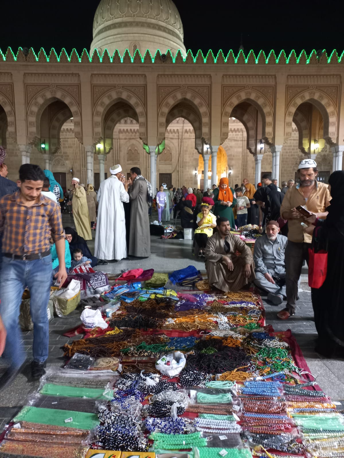 ونصب عدد من الحضور خيمهم في رحاب المسجد ليستهلوا حلقات الذكر وسط ترديد العبارات الصوفية، وقراءة الأناشيد، حيث تشهد الاحتفالات التواشيح والأناشيد الدينية والابتهالات لعدد من المنشدين، كما تشهد خيام الطرق الصوفية حلقات ترديد الأناشيد الصوفية المعروفة في حب الرسول، وحمل الأعلام الخضراء والتكبير والتهليل وسط زحام شديد من أتباع الطرق الصوفية.