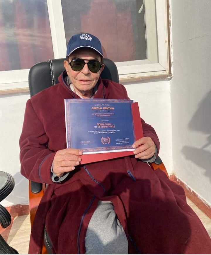 وظهر سمير صبري، خلال الصور، وهو يمسك شهادة تقدير تكريمه من مهرجان الأقصر السينمائي الإفريقية، عن فيلم طلعت حرب 2، والذي تسلمها نيابة عنه المخرج، مجدي أحمد، وحقق العمل نجاحًا جماهريًا كبيرًا في العالم العربي.
