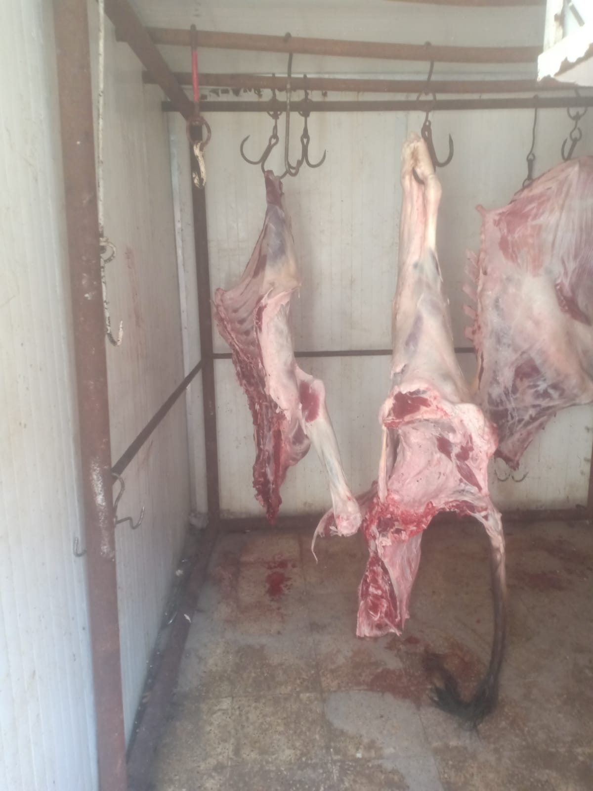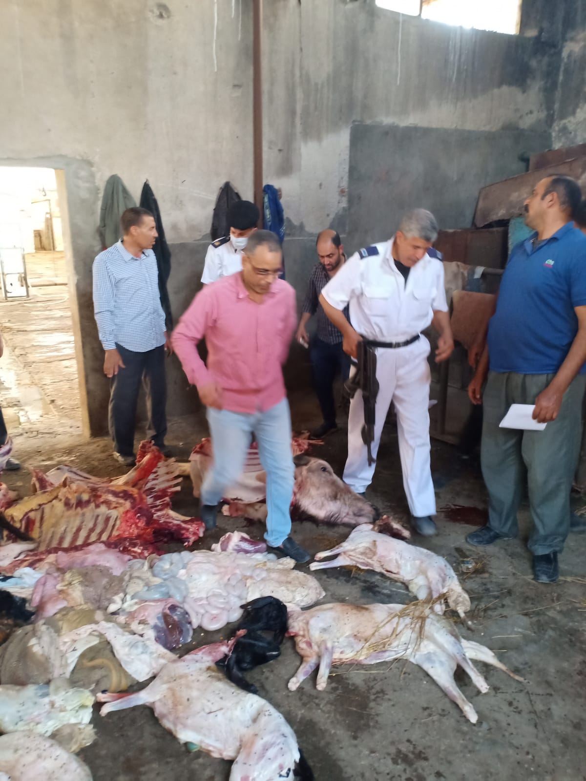 وأسفرت الحملات عن ضبط أحد الجزارين، بحيازته ذبيحة كاملة تزن 300 كجم، وبفحصها تبين وجود نزيف دموي في الأغشية المخاطية للحوم والأحشاء وتغير في الخواص الطبيعية، وتنبعث منها روائح كريهة تدل على وجود تسمم بكتيري بالذبيحة، ولا يوجد عليها أي أختام لمجزر حكومي أو خاص، وعليه فهي غير صالحة للاستهلاك الآدمي.