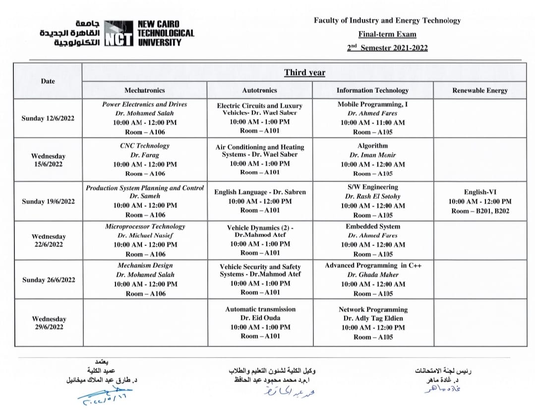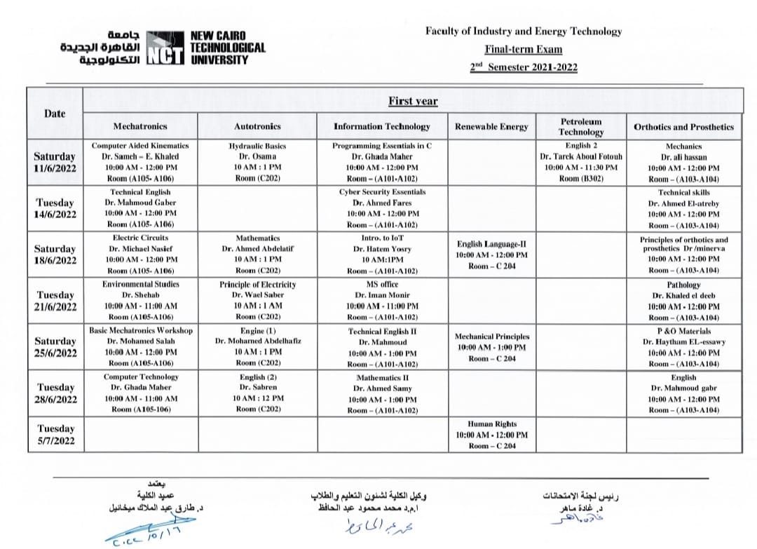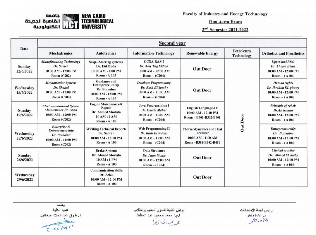 ونشرت جامعة القاهرة التكنولوجية، جدول امتحانات الفصل الدراسي الثاني لطلاب الدفعات، الأولى، والثانية، والثالثة، فيما يلي: