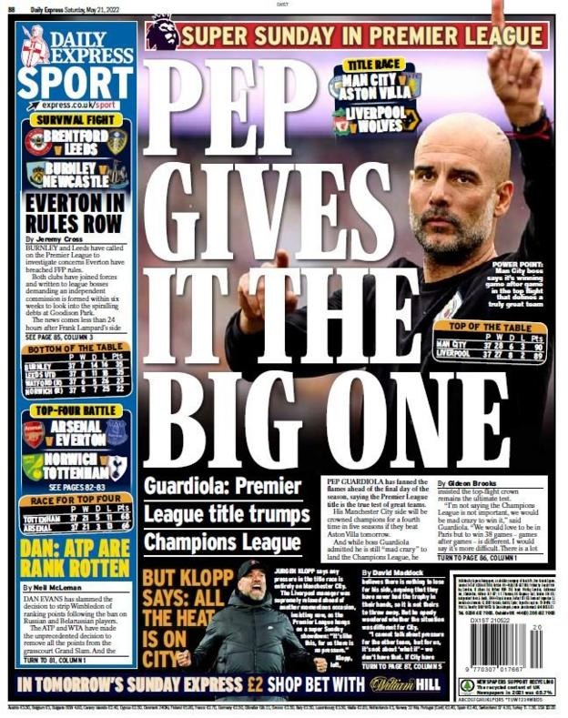 سلطت إكسبريس الضوء على تصريح الإسباني بيب جوارديولا، في غلافها اليوم، وذلك تحت عنوان جوارديولا يعتبر الدوري الإنجليزي أفضل بالنسبة له من دوري أبطال أوروبا.