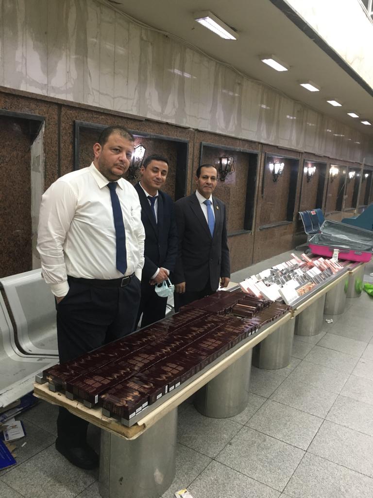 وكف محمد حميدة مدير الجمرك عمرو شعبان مدير الحركة، ومجدي عزت مأمور الجمرك بتفتيش أمتعة الراكب وتكليف محمد الديب ومحمد زايد مأموري الجمرك لتفتيش الراكب ذاتيا، تحت إشراف سامي سليمان مدير الحركة فتبين وجود 500 عبوة من أدوات ومستحضرات التجميل المتنوعة، مخبأة بين طيات الملابس داخل الحقائب، وتقدر قيمة المضبوطات بحوالي مليون جنيه.