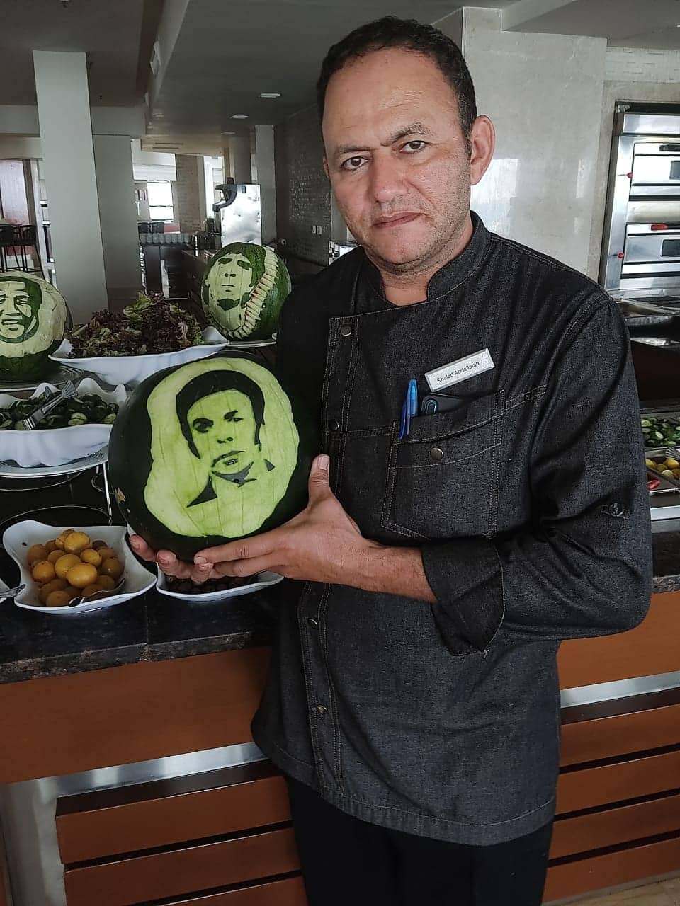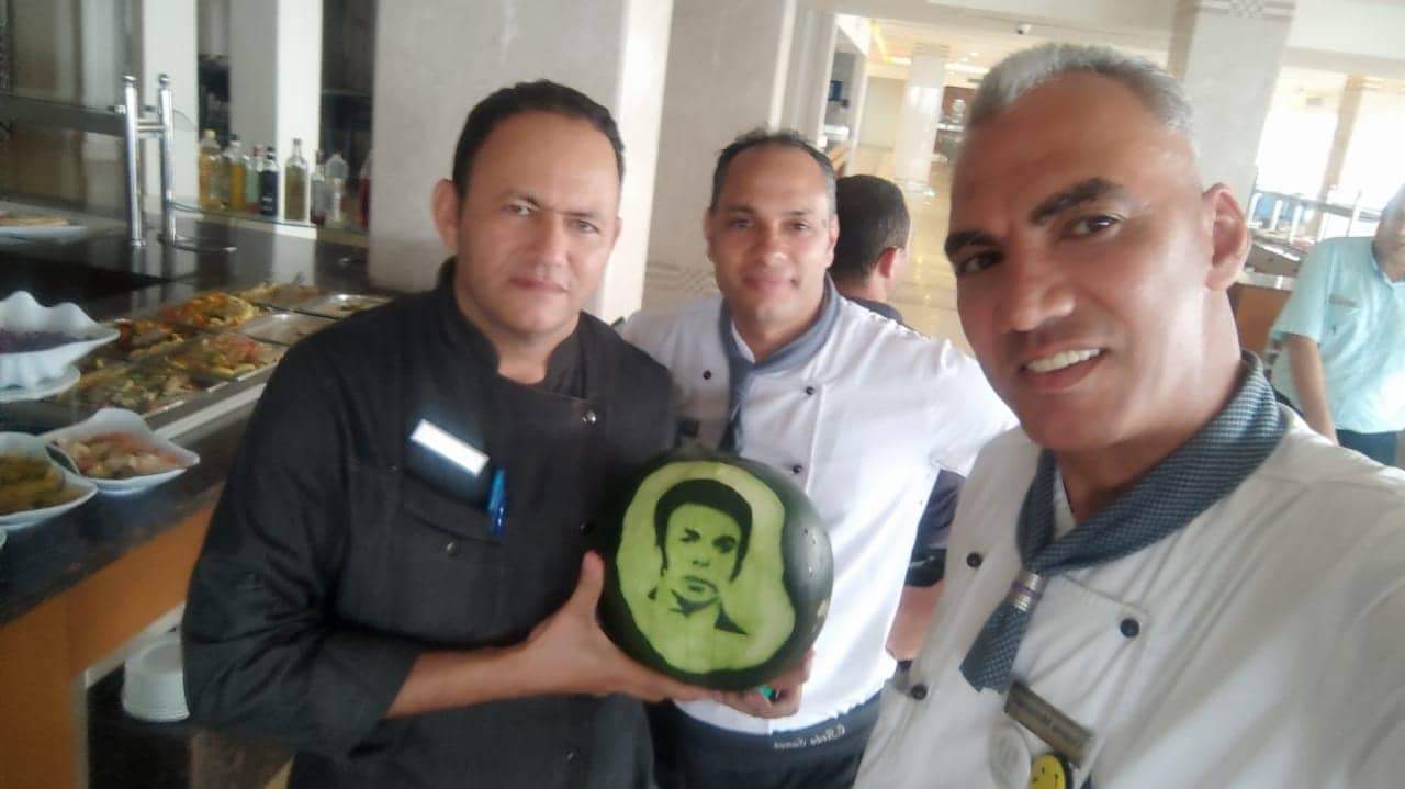 ودع الشيف خالد عبد الفتاح والمعروف بـ "صانع بيتزا النجوم" بالغردقة، الفنان سمير صبري على طريقته الخاصة، حيث نحت صورة الفنان الراحل على ثمرة بطيخ.