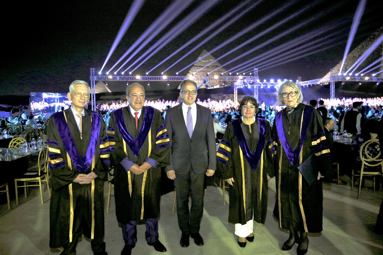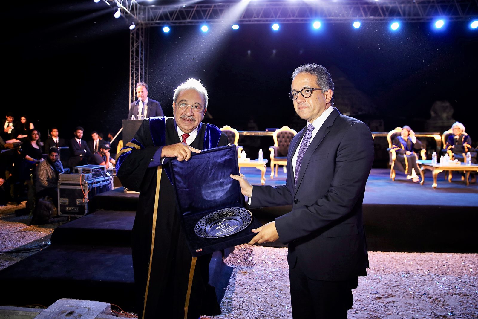 وخلال الحفل، قام الدكتور علي المليجي رئيس مجلس أمناء جامعة أسلسكا ومؤسس جامعة أسلسكا مصر بتكريم الدكتور خالد العناني وتقديم درع الجامعة له، مقدمين له الشكر ولوزارة السياحة والآثار وكافة أجهزة الدولة المصرية لما قاموا به من مجهود لإخراج هذا الحفل بهذه الصورة الرائعة.