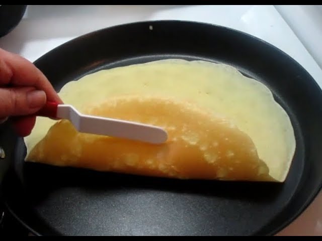 - صبي عجينة الكريب في الطاسة بمقدار قليل حتى ينضج ثم صبي مقدار آخر حتى تنتهي كل كمية العجينة.