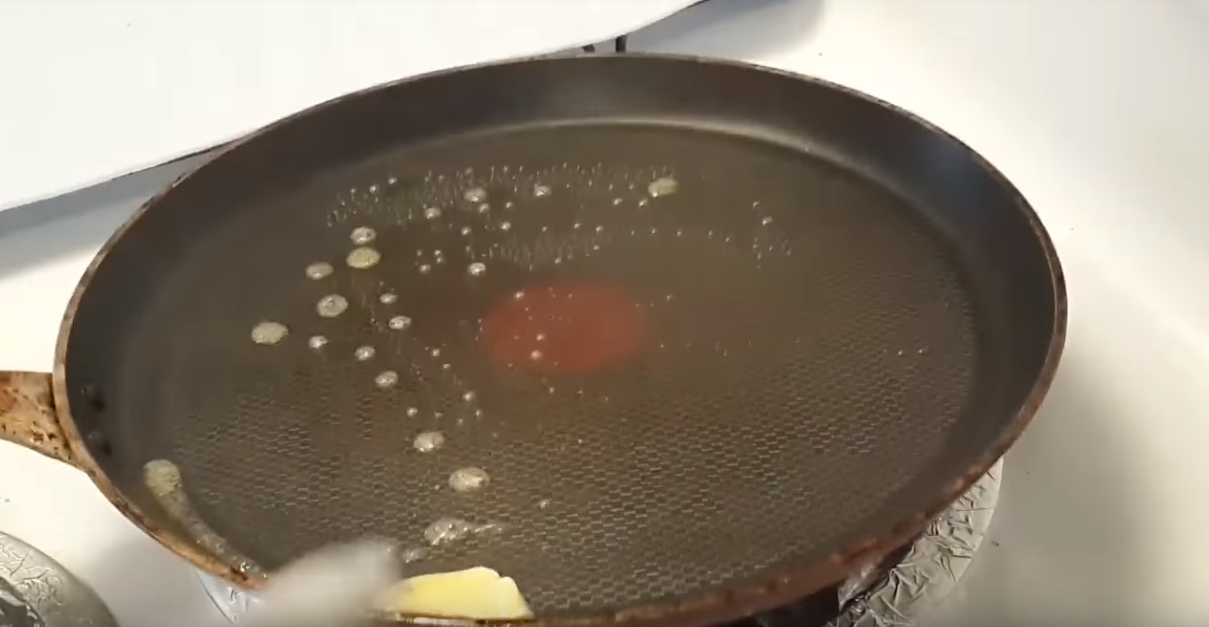 - ادهنيها بالزيت واتركيها تسخن على النار المتوسطة ثم أضيفي مقدار بسيط من عجينة الكريب.