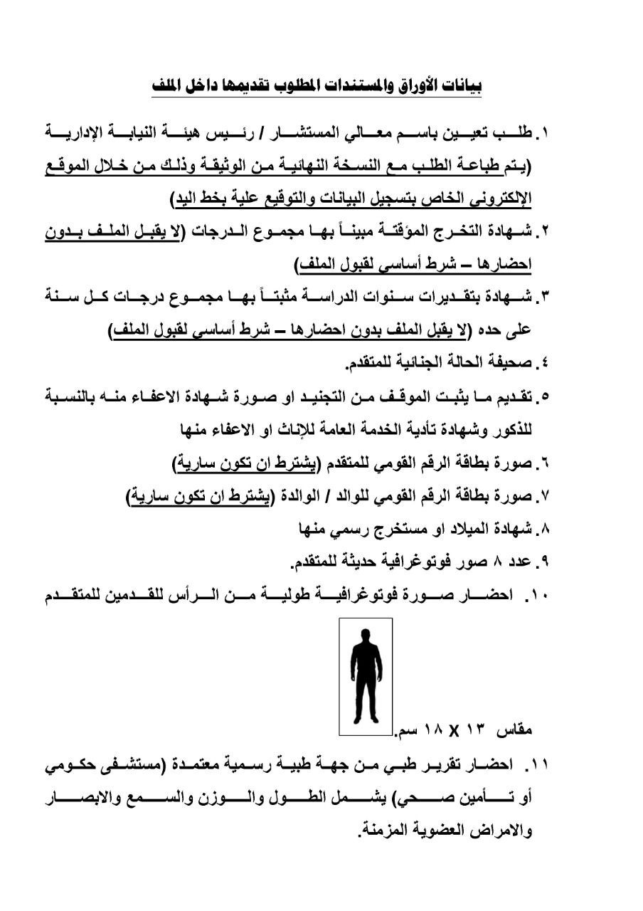 - يتعين على المتقدم إحضار كافة الأوراق والمستندات المطلوب تقديمها داخل الملف معه في المواعيد المحددة.