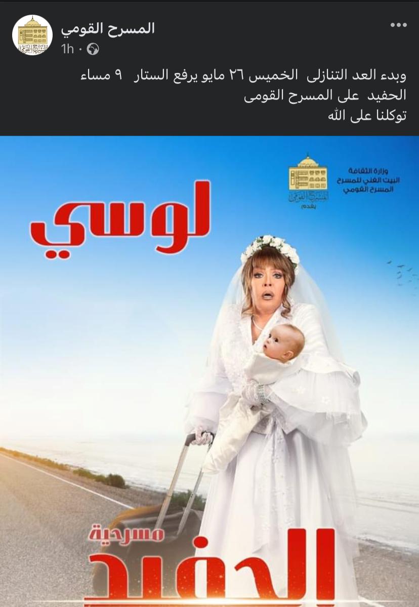 ونشرت صفحة الرسمية للمسرح القومي، منشورًا عبر حسابها الشخصي بموقع التواصل الاجتماعى فيسبوك، وعلق قائلًا:بدء العد التنازلي الخميس 26 مايو يرفع الستار 9 مساءً، مسرحية الحفيد على المسرح القومي، توكلنا على الله.