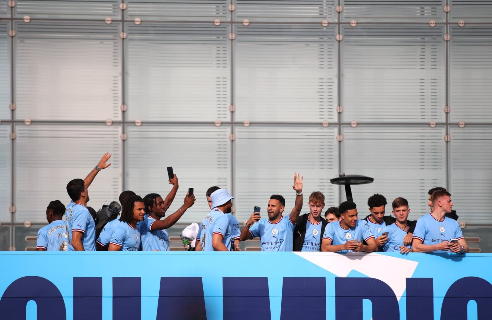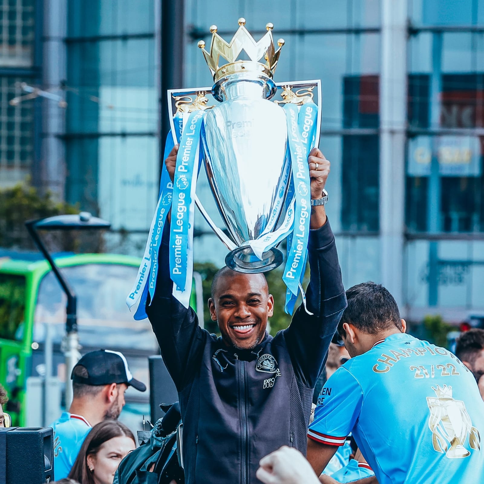 ونظمت إدارة نادي مانشستر سيتي مسيرة للاعبين بـ حافلة مكشوفة في شوارع وميادين المدينة الإنجليزية، ويتقدم المسيرة المدرب الإسباني بيب جوارديولا.