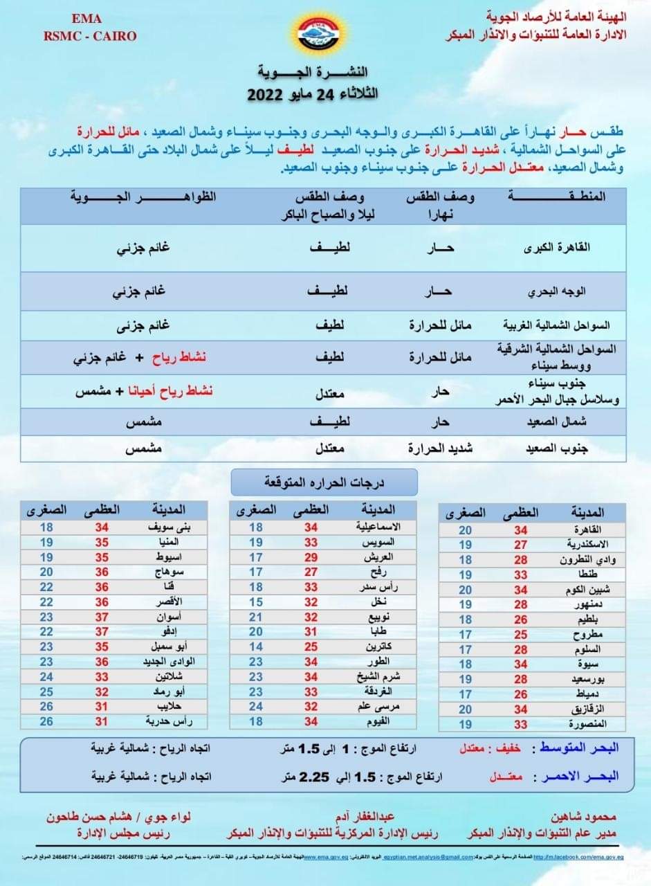 حار نهارًا والعظمى بالقاهرة 34.. موجز أخبار الطقس اليوم الثلاثاء 24 مايو 2022