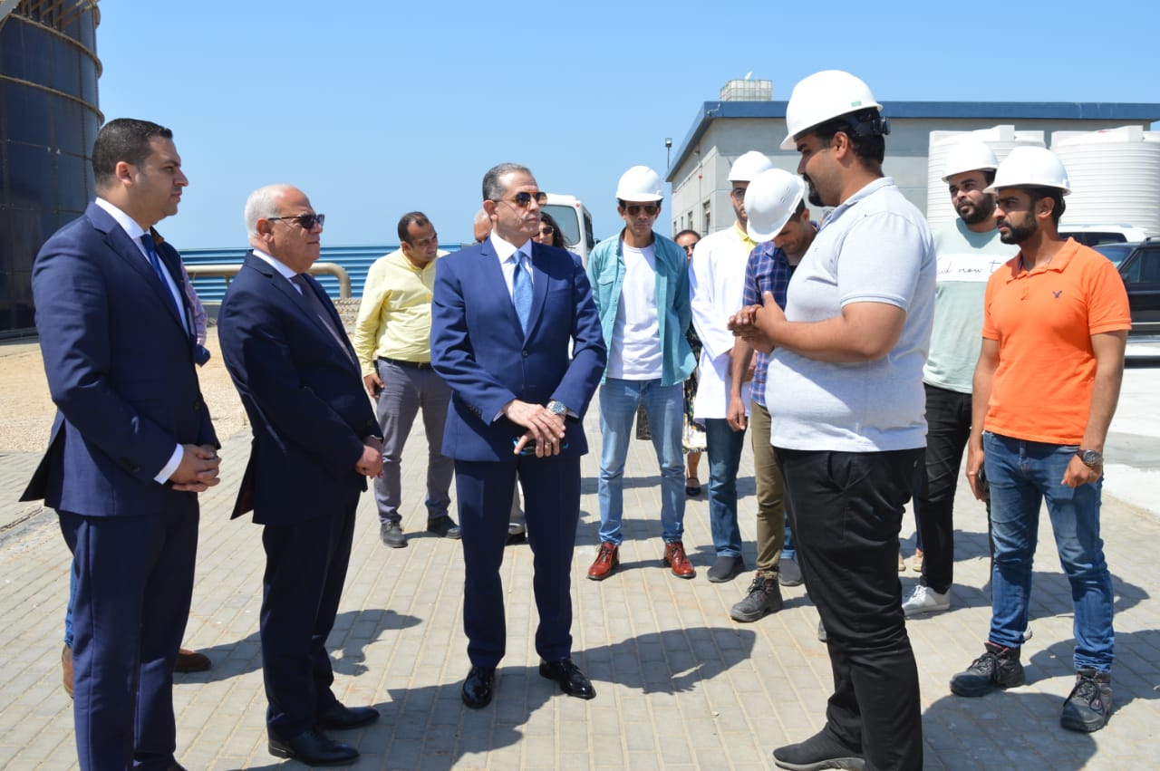 محافظ بورسعيد وأمين عام وزارة البترول يتفقدان محطة معالجة مياه حقل ظهر