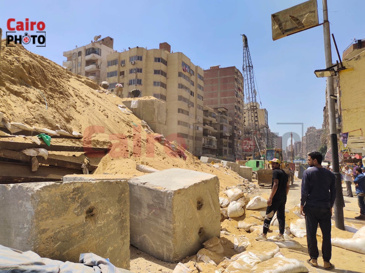 إصابة 3 أشخاص إثر سقوط كتلة خرسانية من إنشاءات كوبري المطبعة بالجيزة | صور