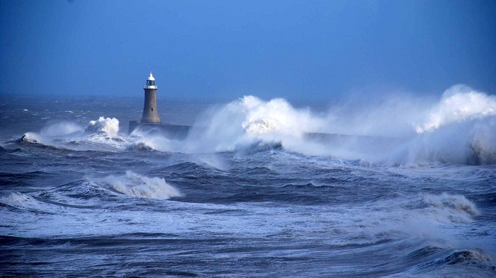 - البحر المتوسط خفيف إلى معتدل، وارتفاع الموج فيه يتراوح بين 1 إلى 1.5 متر، واتجاه الرياح السطحية شمالية شرقية إلى شمالية غربية.