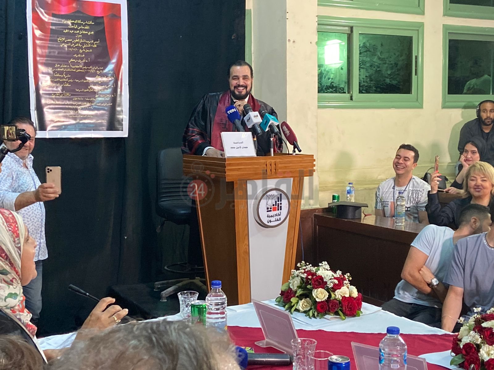 وجاءت رسالة مجدي كامل تحت عنوان “أسس تدريب الممثل لتطوير عنصر الإيقاع للأداء التمثيلي في العرض المسرحي”، وحرص على الحضور كل من زوجته الفنانة مها أحمد والإعلامية بوسي شلبي، ورمضان صبحي، لاعب نادي بيراميدز الحالي والأهلي السابق.