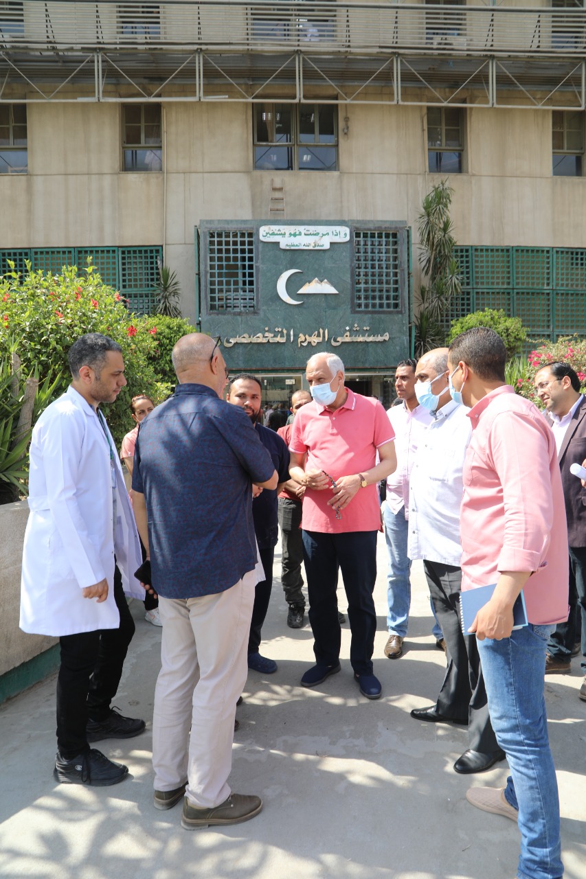 ورافق المحافظ خلال زيارته اللواء علاء بدران السكرتير العام والدكتور سامح العشماوي، مدير مديرية الصحة بالجيزة، والدكتور منصور خليل مدير مستشفى الهرم والمهندس حسن موافي والدكتور أشرف تامر رؤساء أحياء الهرم والطالبية.