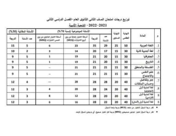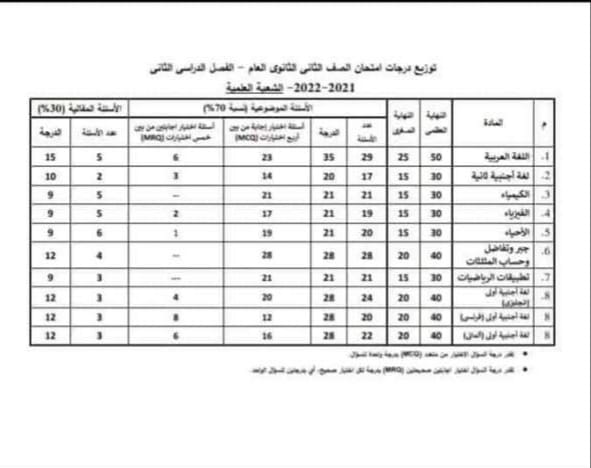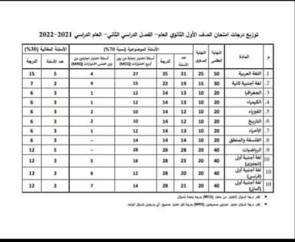 ننشر توزيع درجات امتحانات الصفين الأول والثاني الثانوي 2022