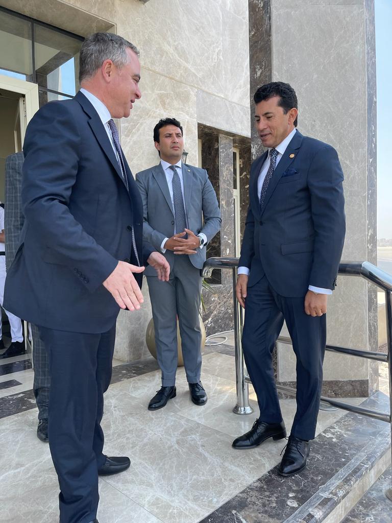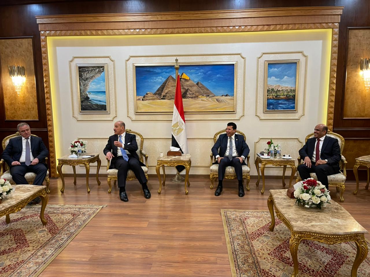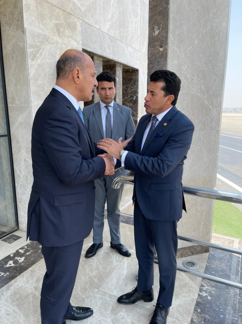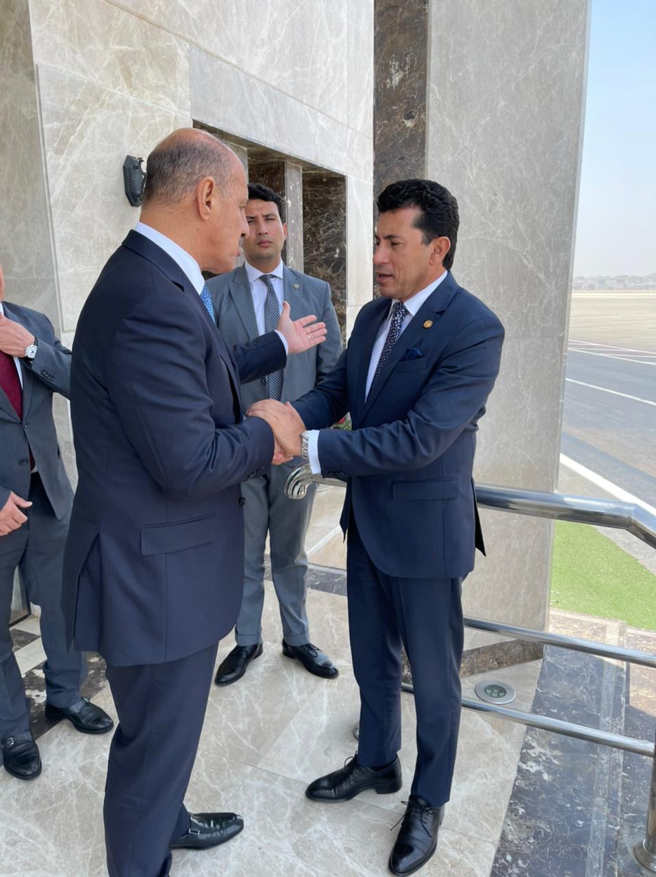 أشرف صبحي يودع نظراءه من دول العراق والأردن واليمن بعد المشاركة في اجتماعات مجلس وزراء الشباب والرياضة العرب