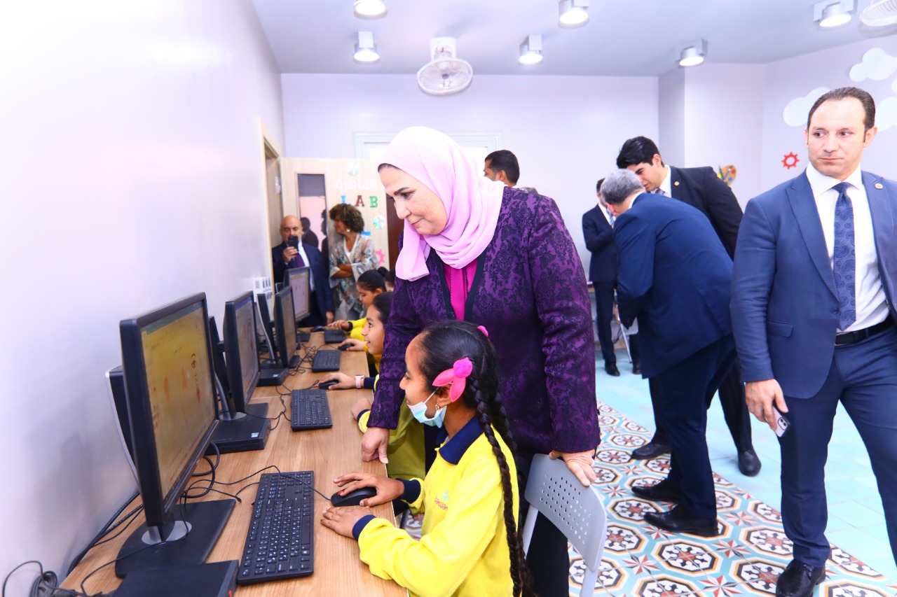 وزيرة التضامن ورئيس مجموعة البنوك الدولية يزوران مدرسة تواصل المجتمعية باسطبل عنتر| صور